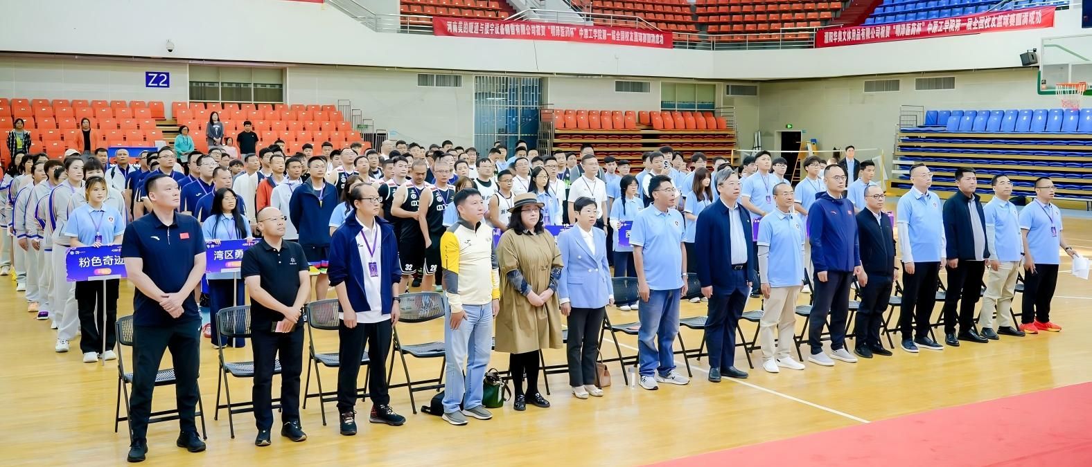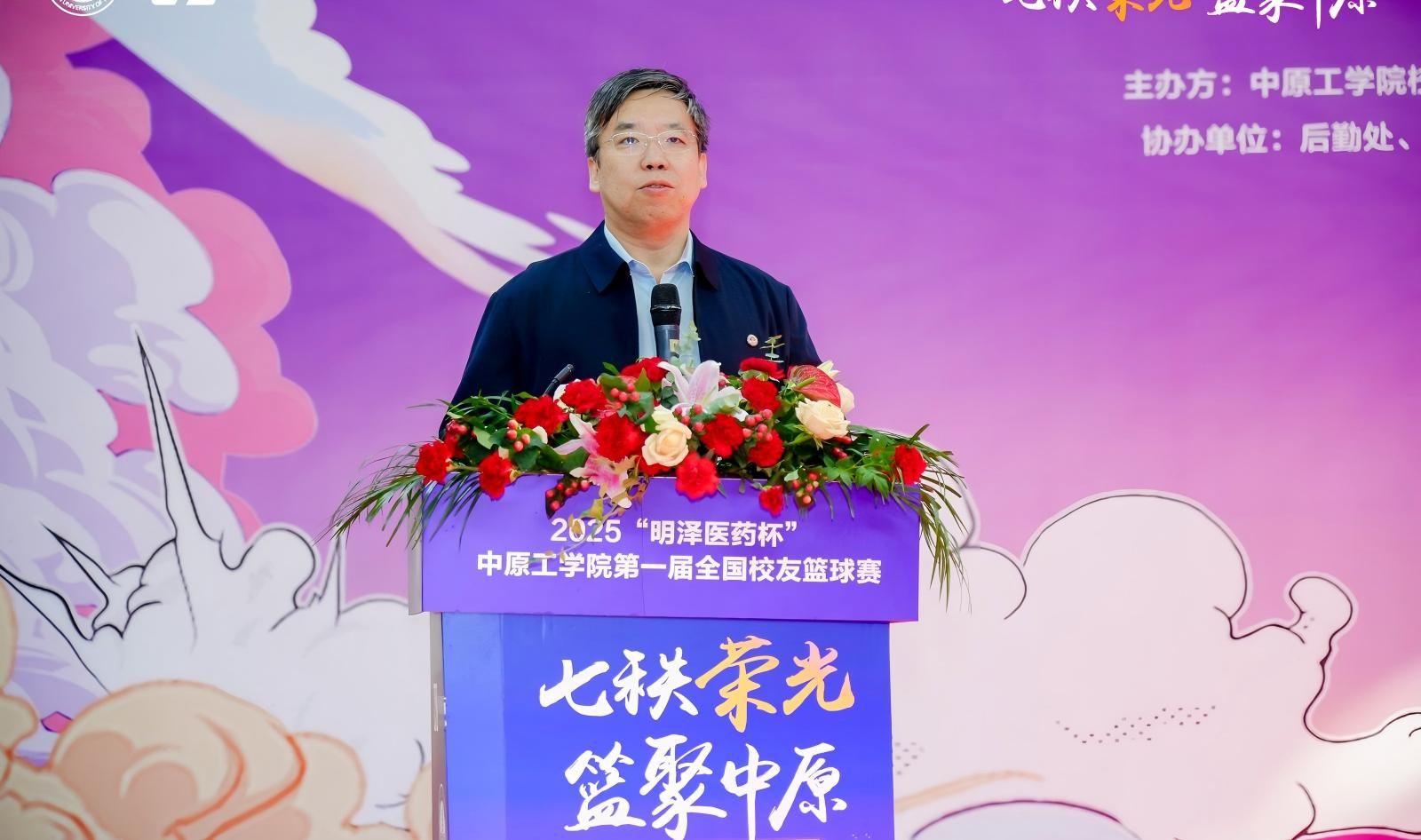 七秩芳华传薪火,一场篮球聚深情。为迎接中原工学院建校70周年,营造深厚的校庆氛围,“七秩荣光·篮聚中原”2025“明泽医药杯”中原工学院第一届全国校友篮球赛在龙湖校区体育馆激情开赛,并于本月21日圆满落下帷幕。校党委副书记、工会主席宋晓炜出席开幕式并致辞。校工会、体育部、校友会办公室等部门负责人与来自全国各地的7支代表队校友一同参加活动。