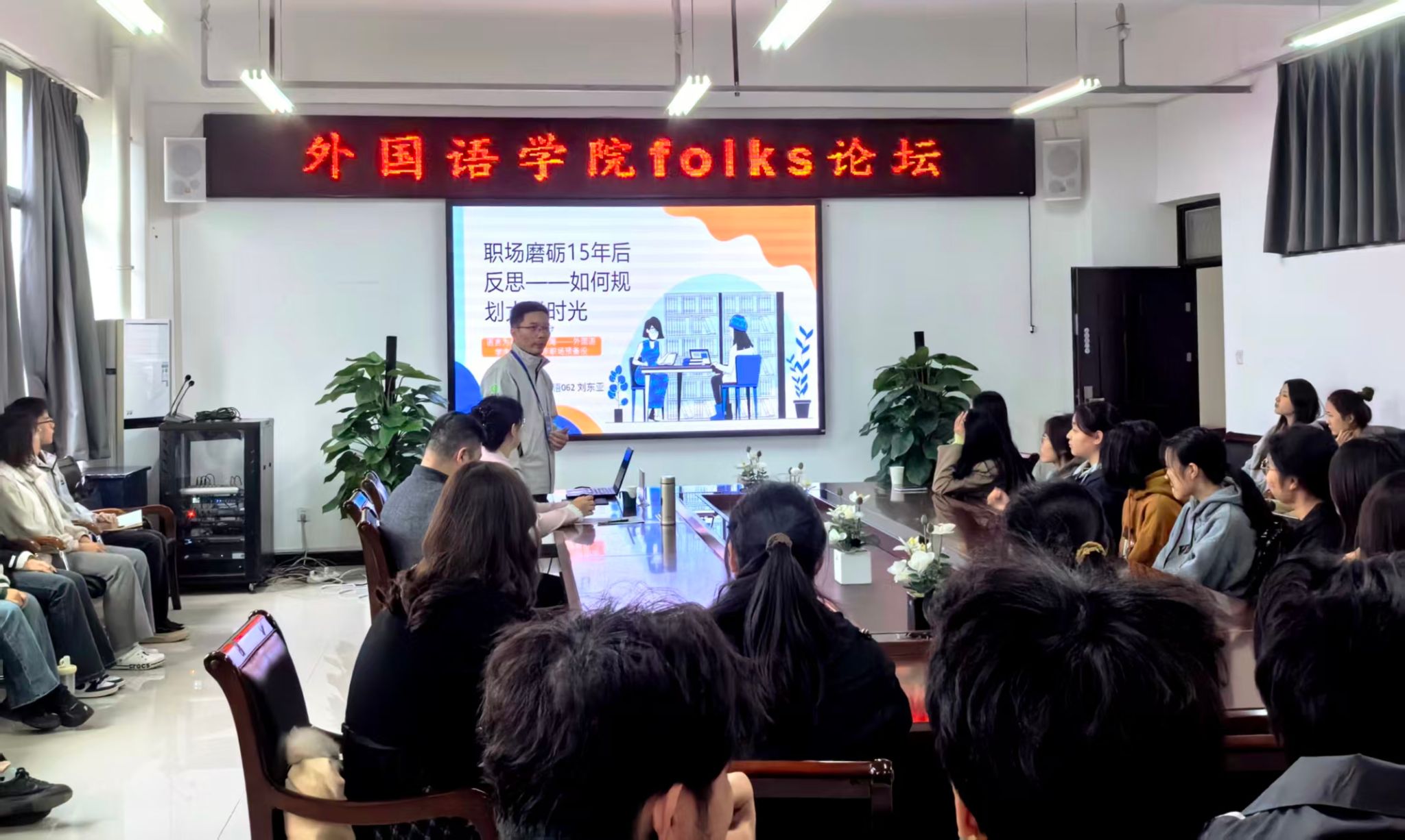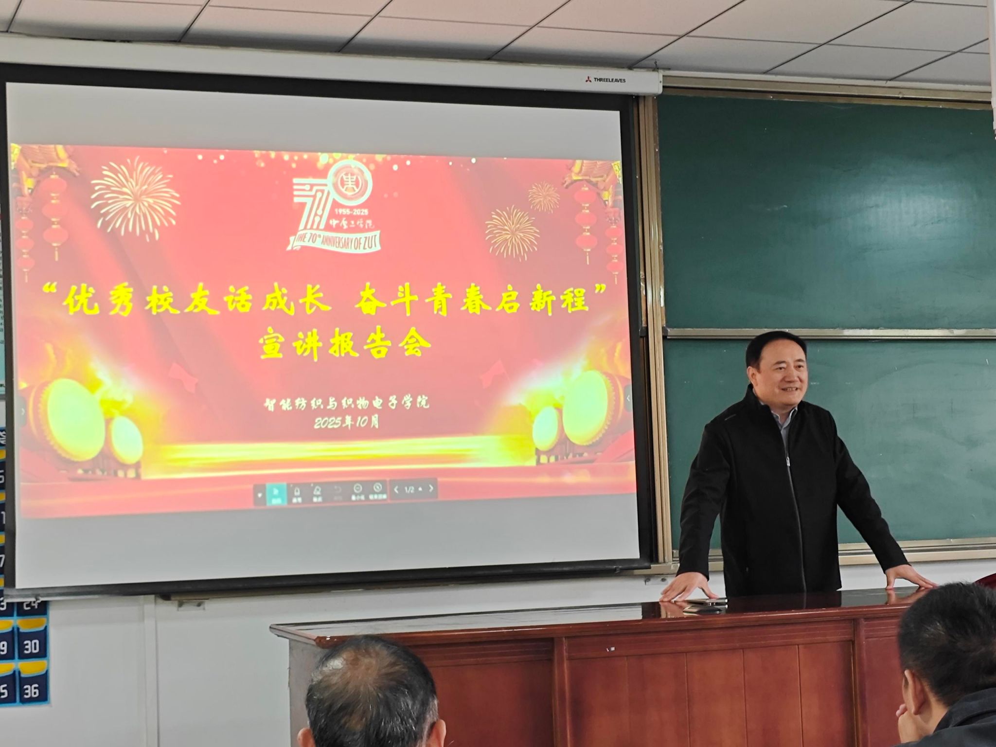 各学院还通过举办讲座、论坛和事迹报告会等形式,充分发挥校友的榜样引领作用。智能机电工程学院(工业设计学院)举办“七秩薪传,强国有我——与将军学长关于使命的对话”座谈会和“曾经 当下 未来”校友论坛。中国共产党第十三届中央委员会委员、第十五届中央委员会候补委员、第十六届中央委员会委员,原兰州军区司令员李乾元上将与青年大学生座谈,勉励青年学子多读书、多学习,拓宽视野和思维,胸怀家国,矢志奉献,将个人理想融入强国建设、民族复兴的伟大征程;东华大学副校长陈革教授,经纬纺织机械股份有限公司党委书记、董事长邵明东,河南力锋科技有限公司董事长赵世辉分别代表80年代、90年代、00年代校友作代表性发言;陈革受邀以“思维革新与教育协同:新时代育人实践的探索”为题开展专题讲座;赵世辉以“从校园启航:我的成长与成才之路”为题,参加“学长有话说”主题分享交流活动。外国语学院的“folks讲坛”邀请刘东亚、王璐等校友分享职场经验与人生规划;艺术设计学院邀请王子健、吕强等校友,分享其在制片、AI摄影等领域的创新实践;软件学院、数学与信息科学学院、智能纺织与织物电子学院、智能服饰与服装学院等则通过校友成长论坛、大讲堂、宣讲报告会等形式,让校友们将宝贵的行业洞察、学术心得与奋斗精神传递给在校学子,激励他们明晰方向、奋发前行。