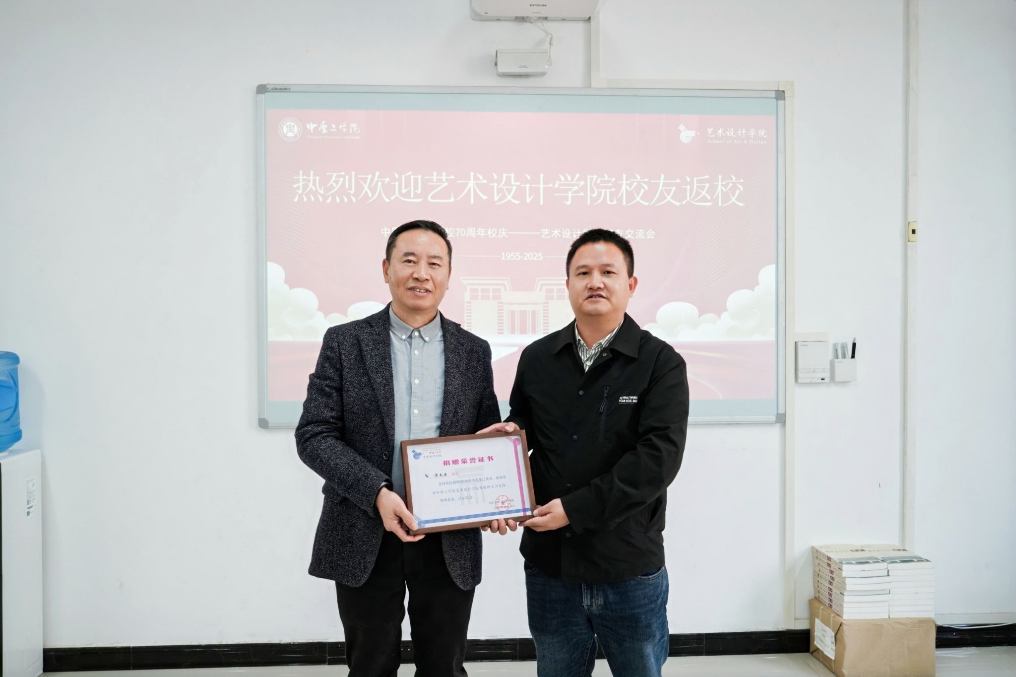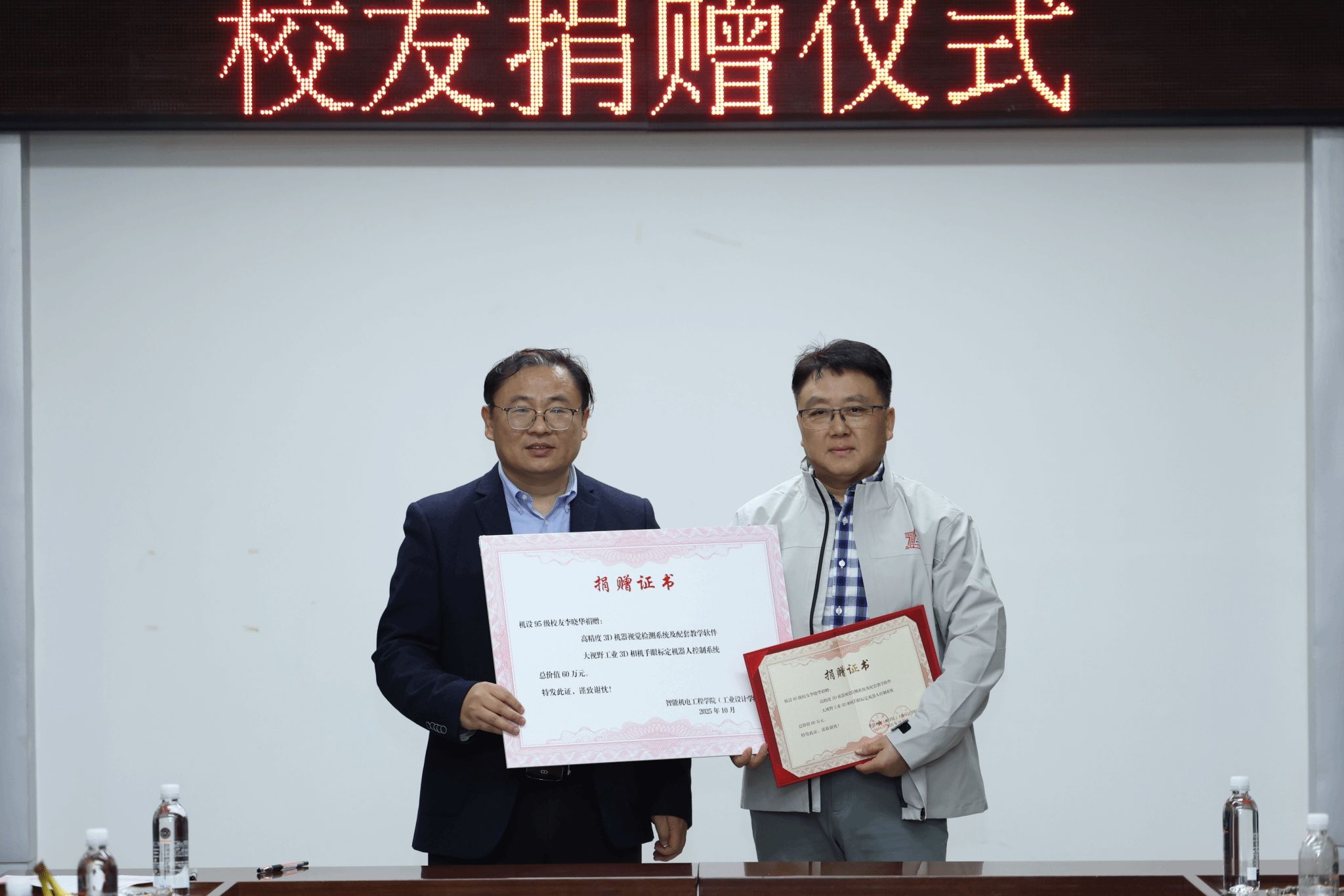 校庆亦是深化合作、共育新机的重要契机。湖南省科协党组书记、常务副主席王瑰曙代表湖南校友会向自动化与电气工程学院捐赠《岳阳楼记》书法作品,表达湖南校友对母校七十华诞的诚挚祝福与深厚情谊。自动化与电气工程学院校友企业、江苏睿芯源科技有限公司董事长申文忠设立创新创业基金,同时,学院还聘任校友担任大学生职业生涯规划校外导师,以校友传帮带助力学生成长成才。智能机电工程学院(工业设计学院)与河南力锋科技有限公司签署战略合作协议,联合成立“柔性钣金生产线校企研发中心”,打造产教融合新标杆;机设95级校友、深圳金信诺股份有限公司战略发展总经理、深圳大舜激光合伙人战略资本总经理李晓华向智能机电工程学院(工业设计学院)捐赠两套总价值60万元的尖端设备。经济管理学院与3家校友企业现场签订校企合作协议,并聘请24位校友担任“本科生校外导师”。计算机学院、材料电子与储能学院等也分别与多家校友企业达成合作意向或完成签约,推动产教融合迈向新高度。艺术设计学院为慷慨捐赠的校友颁发荣誉证书,彰显了校友反哺母校的深情厚谊。法学院(知识产权学院)举行校友会成立大会暨校友理事会成员聘任仪式,持续深化与校友的联系合作。这些举措切实加强了学校与校友、企业间的纽带,为人才培养和事业发展开拓了更广阔的平台。